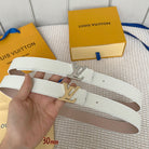 LV Initiales 30mm Reversible Belt Silver Buckle Pink White Leather
