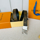 LV Initiales 30mm Reversible Belt Silver Rotating Buckle Black Brown Leather