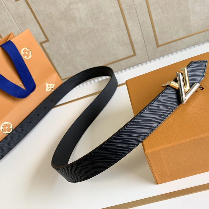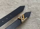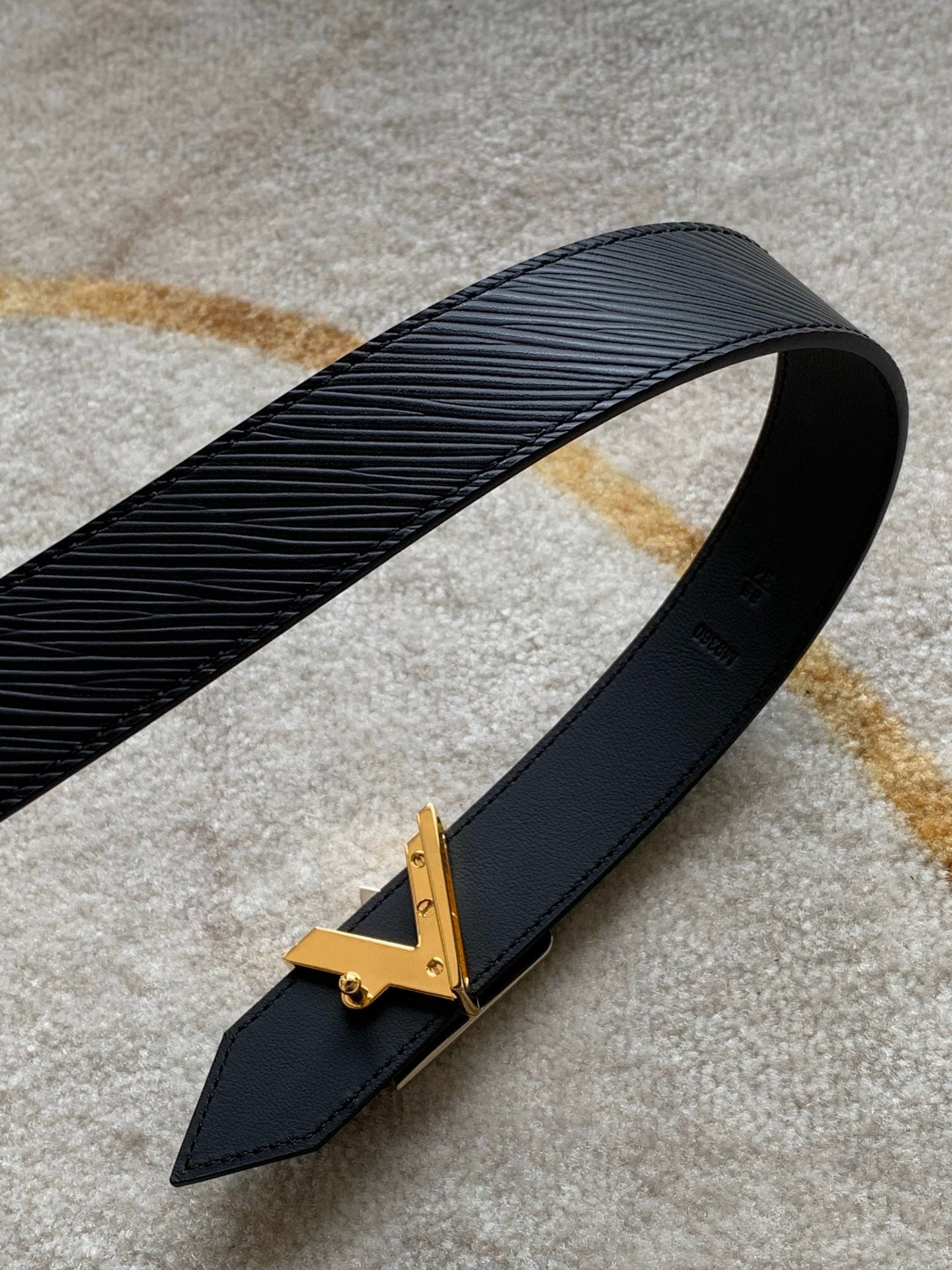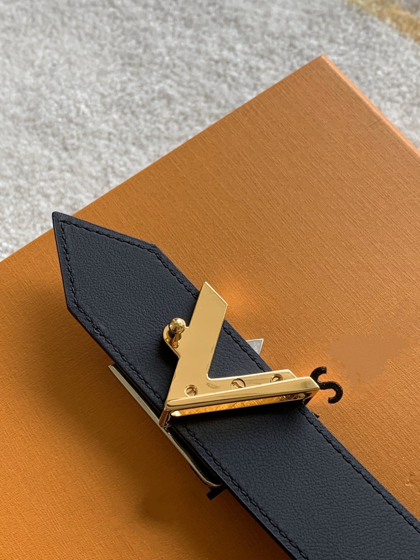 WOMEN'S LV BELT SILVER BUCKLE BLACK LEATHER 30MM