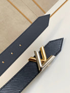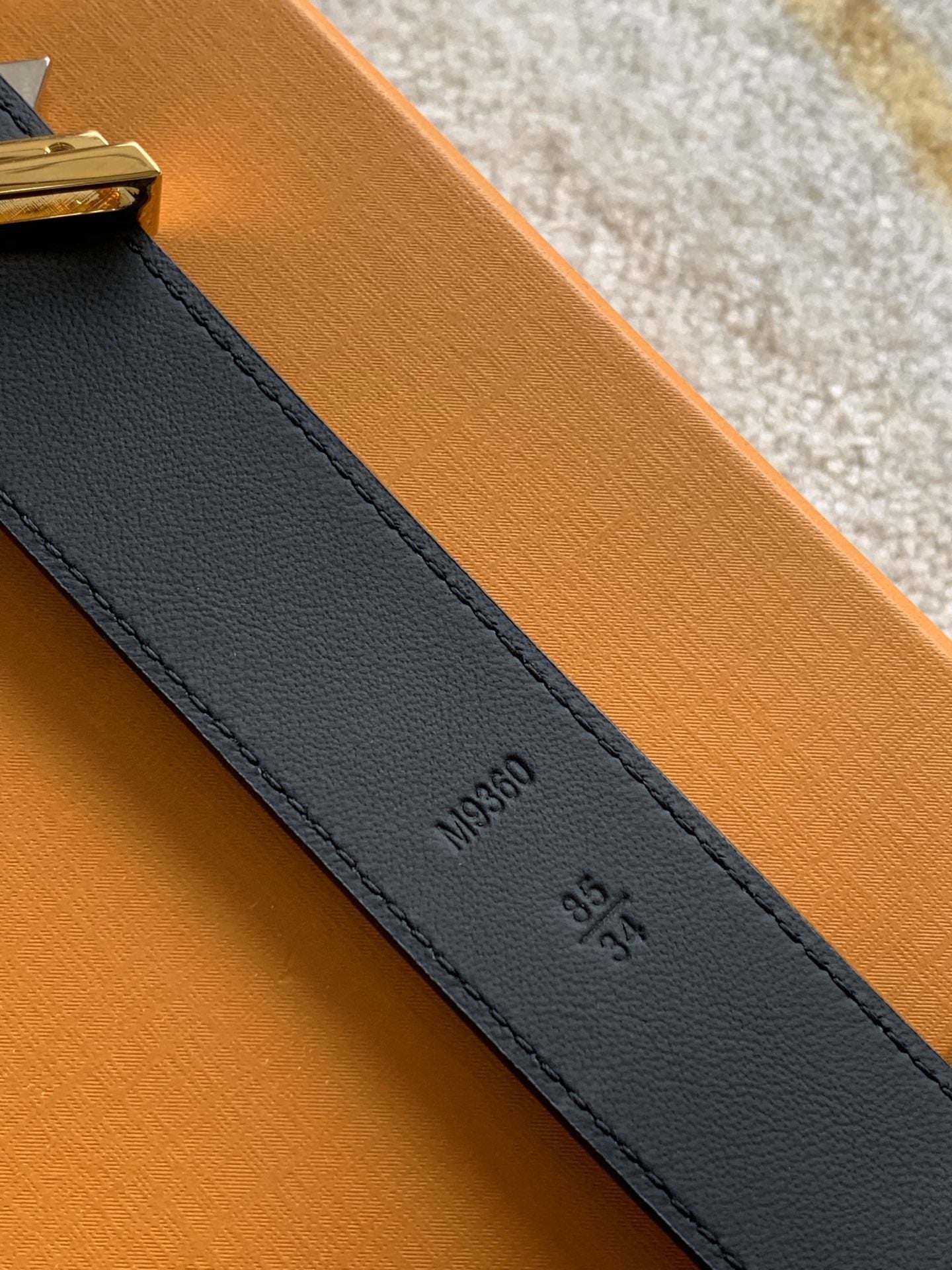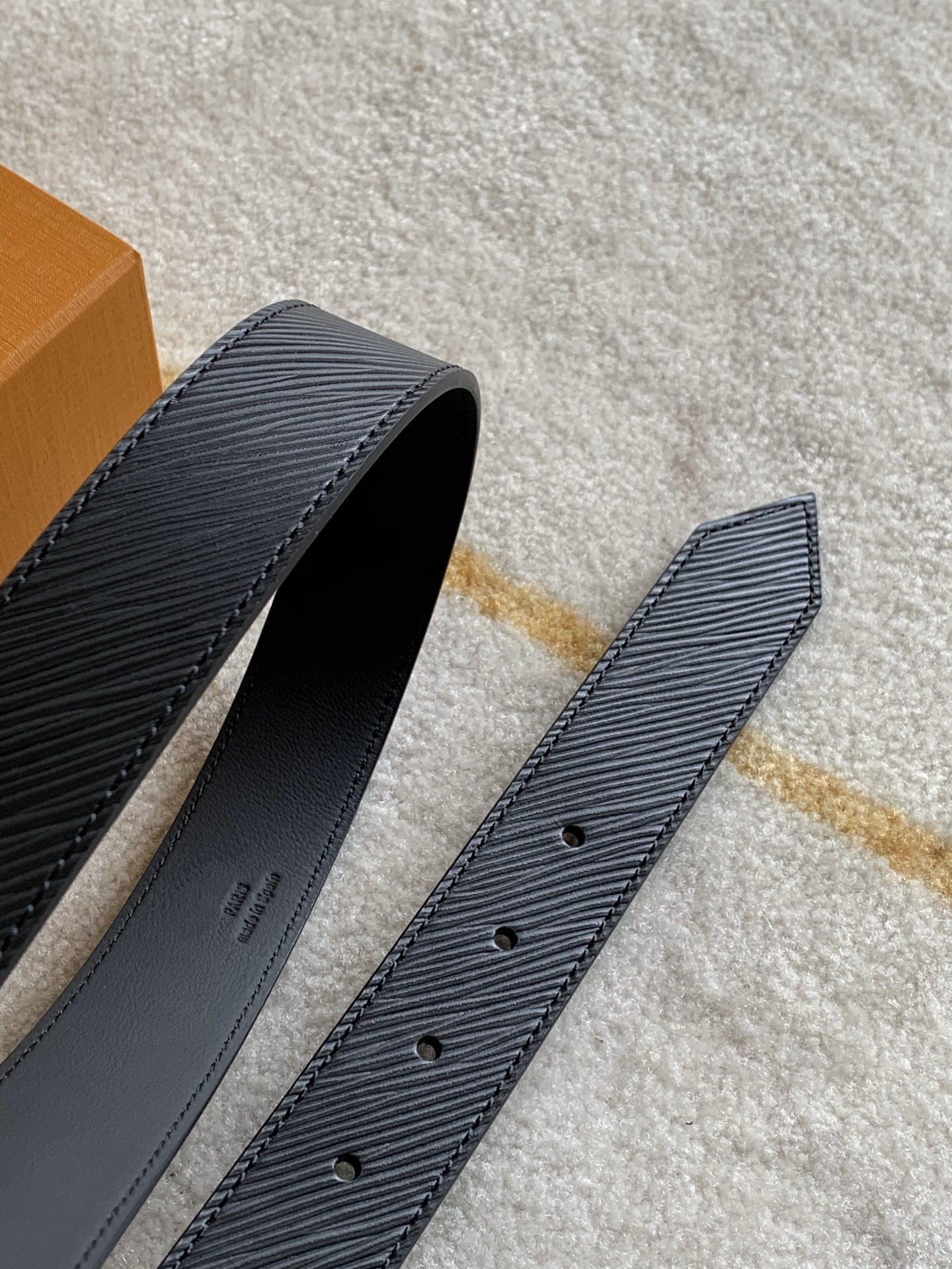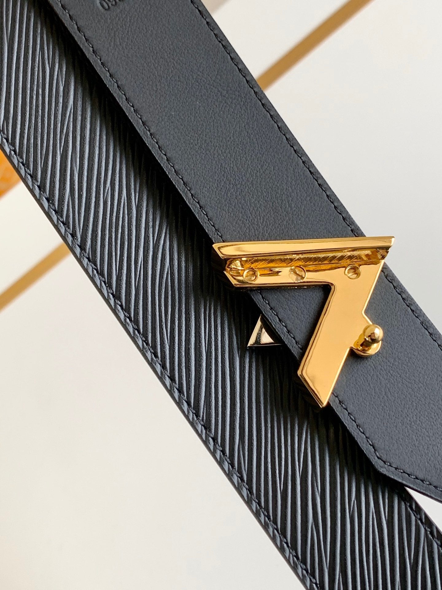 WOMEN'S LV BELT SILVER BUCKLE BLACK LEATHER 30MM