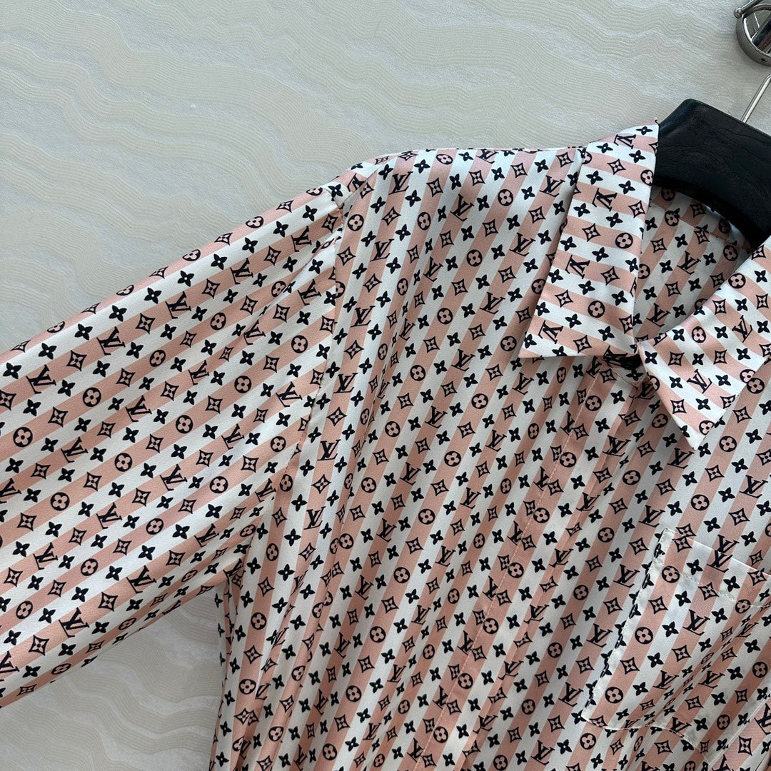 LV 25 Retro Hong Kong Small Flying Sleeve Shirt Pink Black Blue Viscose Rayon