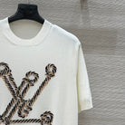 LV 25 Button Rope Jacquard Knitted T-Shirt White Wool Polyester