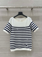 LV 25 Button Rope Short-Sleeved Shirt White Blue Wool