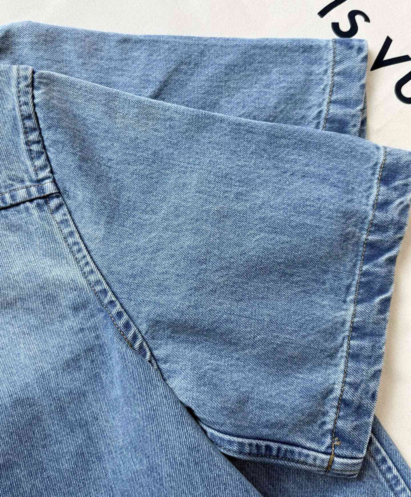 LV 25 Denim Pocket Embroidered Short Sleeve Shirt Blue Cotton