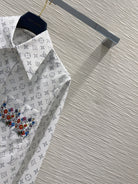LV 25 Floral Wristband Shirt White Grey Polyester