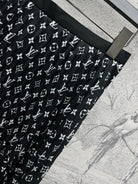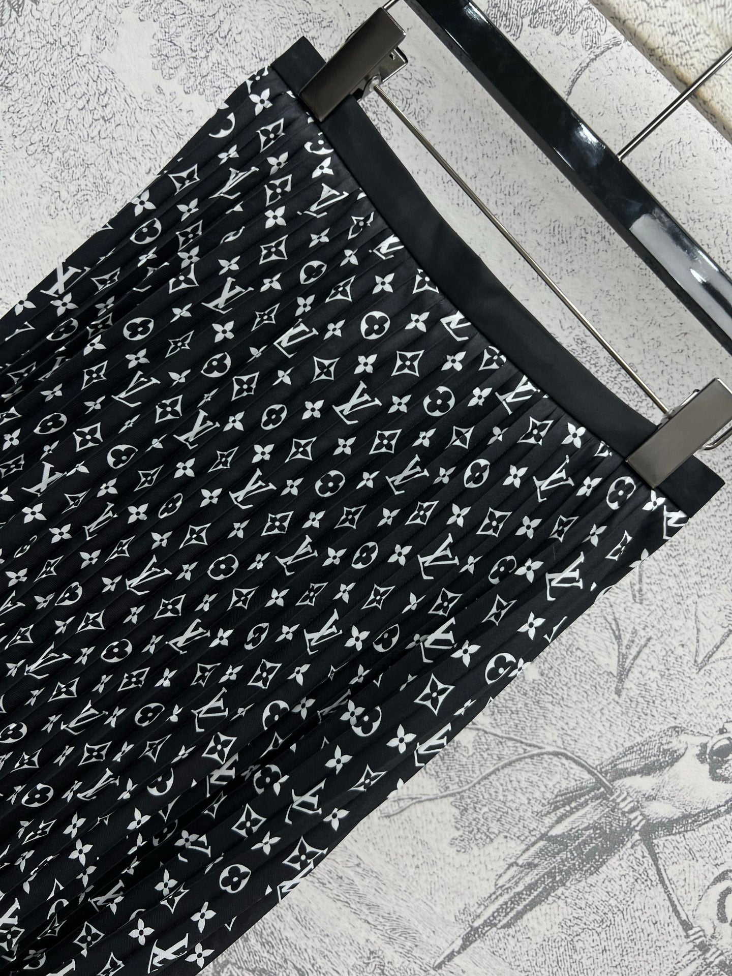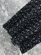 LV 25 Flower Barrage Print Lapel Dress Black Polyester