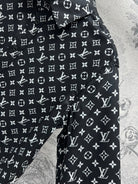 LV 25 Flower Barrage Print Lapel Shirt Black Polyester