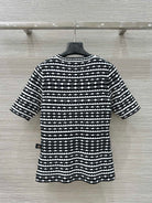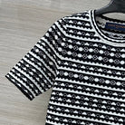 LV 25 Geometric Wave Pattern Round Neck Knitted T- Shirt Black Wool