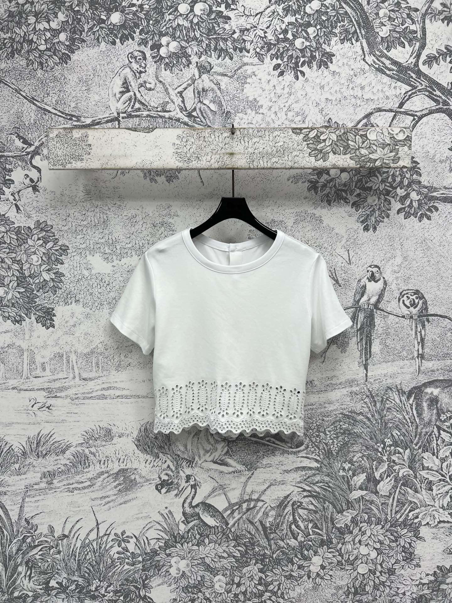 LV 25 Hollow Embroidery Design On The Hem T-Shirt White Cotton