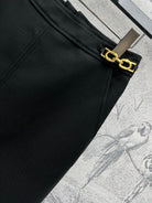 LV 25 Long Skirt Logo Black Polyamide Wool