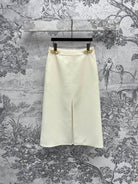 LV 25 Long Skirt Logo White Polyamide Wool
