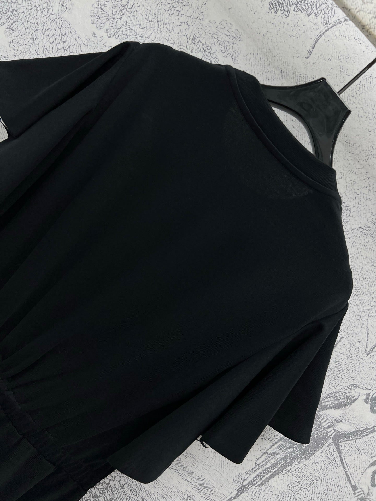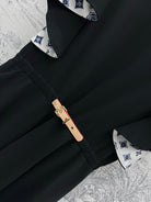 LV 25 Lotus Leaf Short Sleeve Dress Black Cotton
