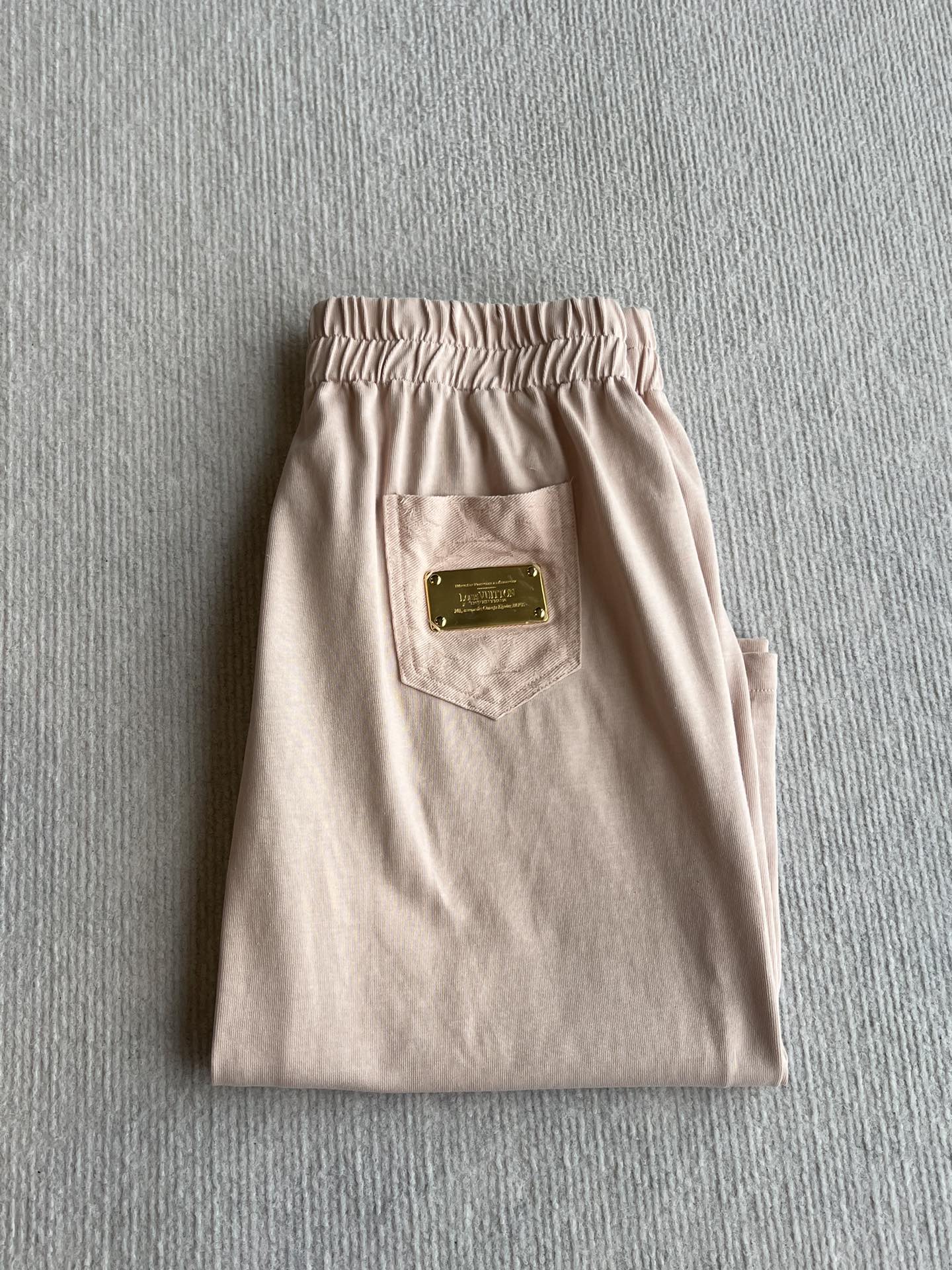 LV 25 Monogram Pocket Patch Iron Elastic Waist Set Light Pink Cotton