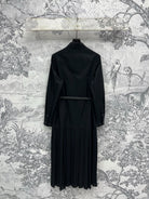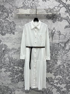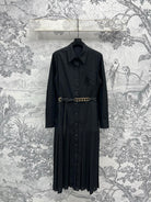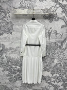 LV 25 Pleated Design Belt That Pinches Waist Dress Black White Cotton