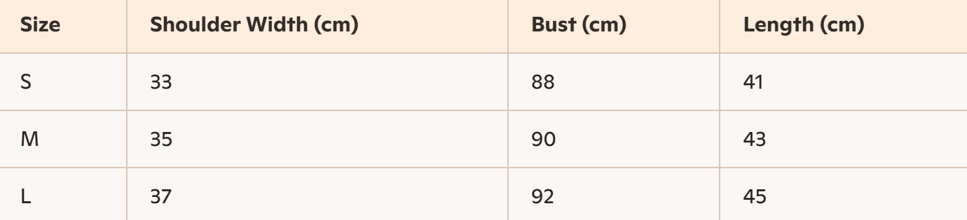 - Size: S, M, L
