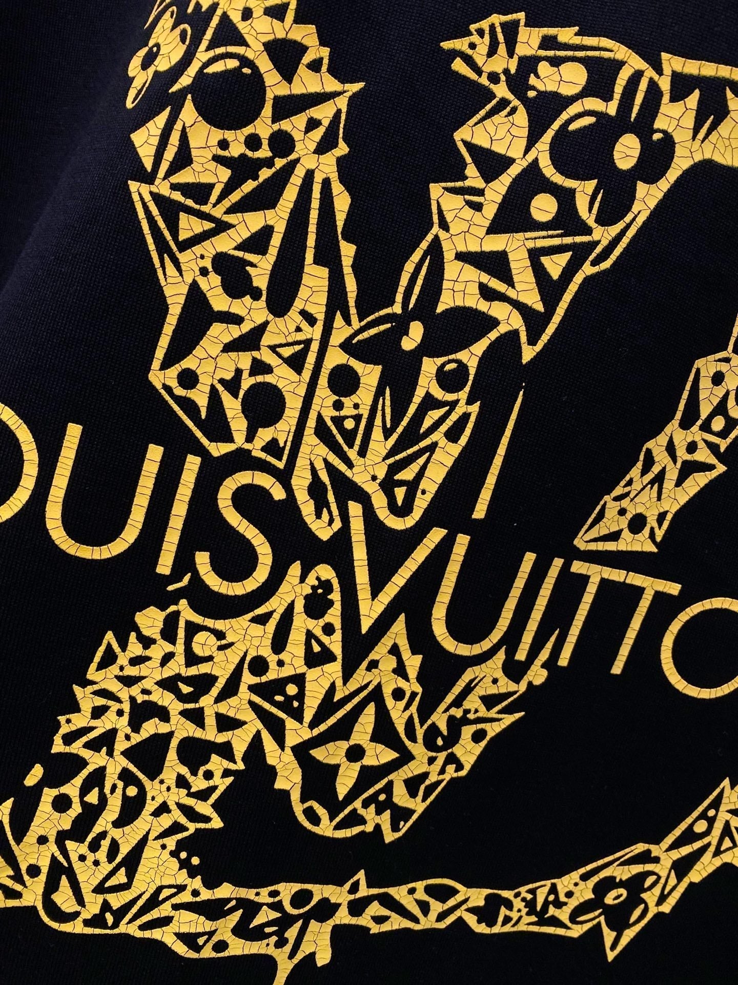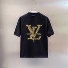 LV BLACK COTTON T-SHIRT YELLOW LOGO 238821