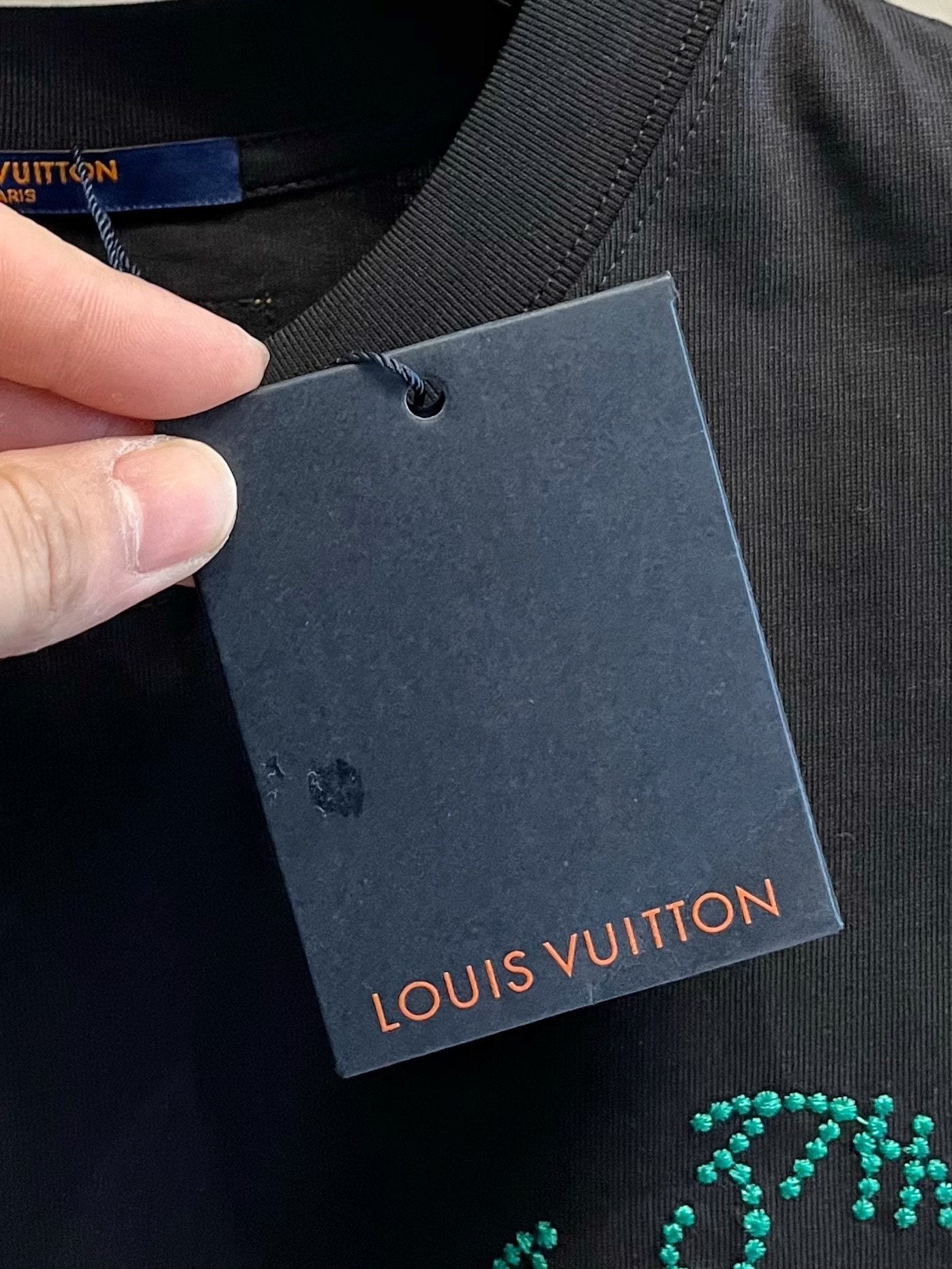 LV T-SHIRT IN BLACK EMBROIDERED LOGO PURE COTTON 238776