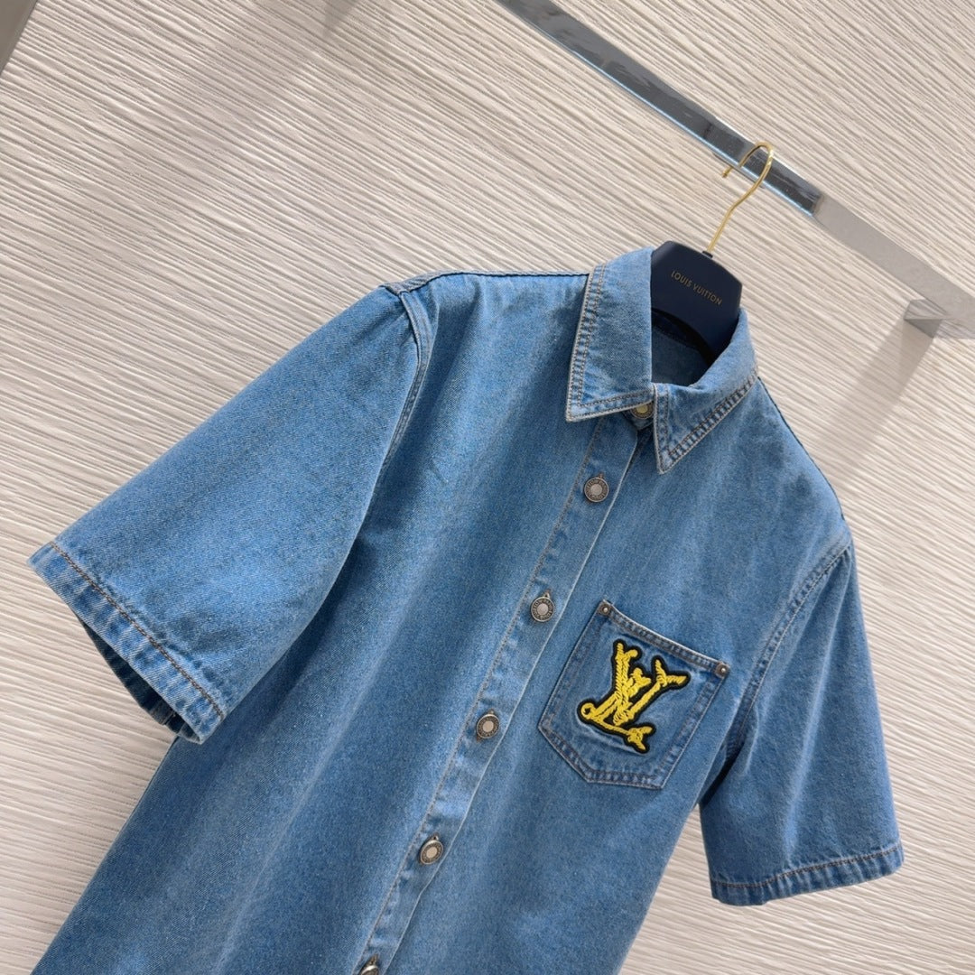 LV Hair Edge Craftsmanship Denim Dress Blue Cotton