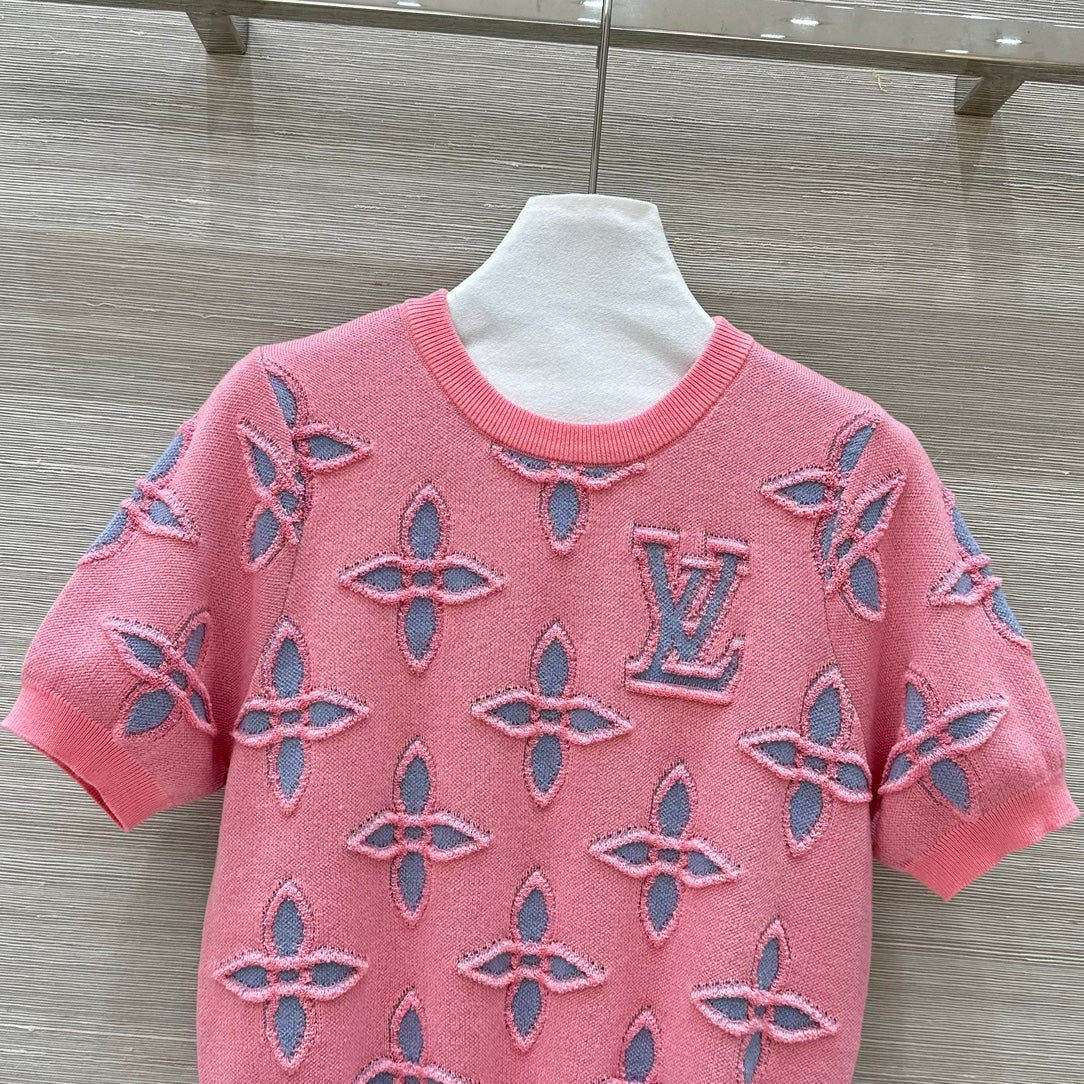 LV 25 Knitted Short-Sleeved Top Pink Wool