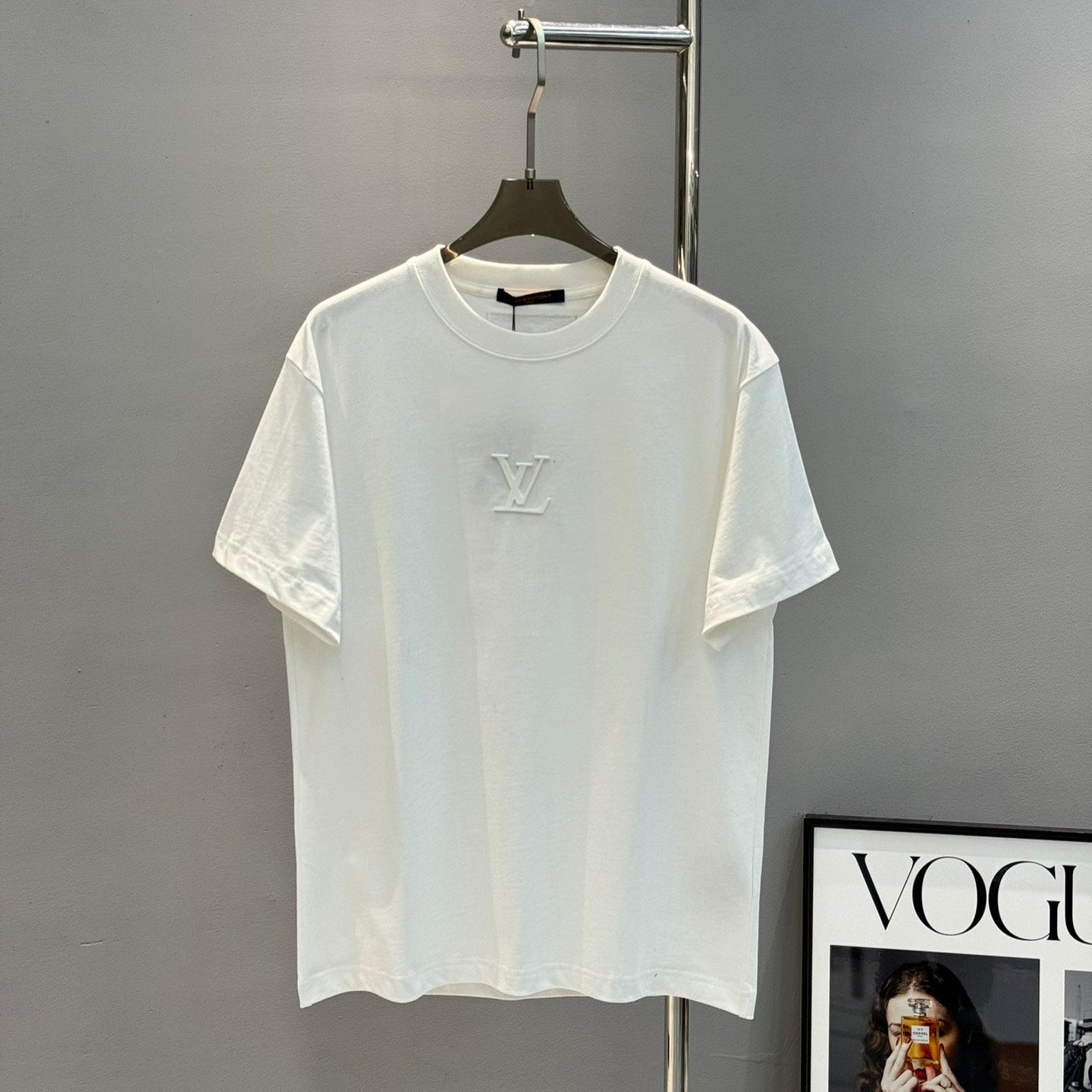LV T-SHIRT LOGO EMBROIDERED WHITE COTTON 238805