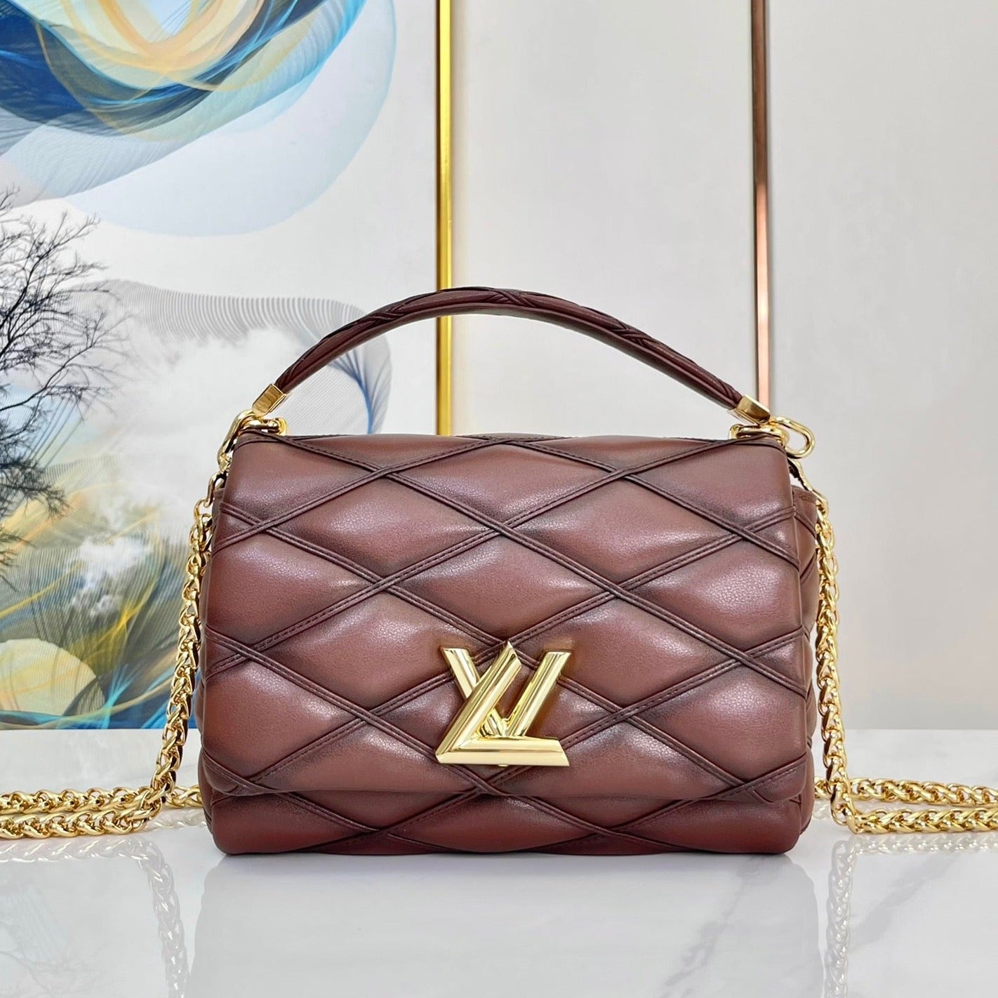 LV Boulogne PM Bag Burgundy Gold Embossed Grained Cowhide Leather