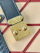 SIDE TRUNK 21 IN BEIGE RED LAMBSKIN WITH CRISS CROSS PATTERN GOLD HARDWARE