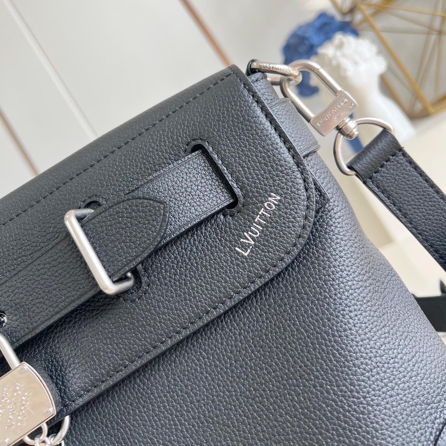 STEAMER CROSSBODY 30 IN BLACK CALFSKIN SILVER HARDWARE