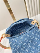 SUNSET 27 IN BLUE MONOGRAM DENIM GOLD BUCKLE