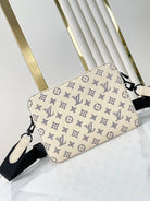 TRIO MESSENGER 25 IN CREAM BLUE MONOGRAM SHADOW CALFSKIN