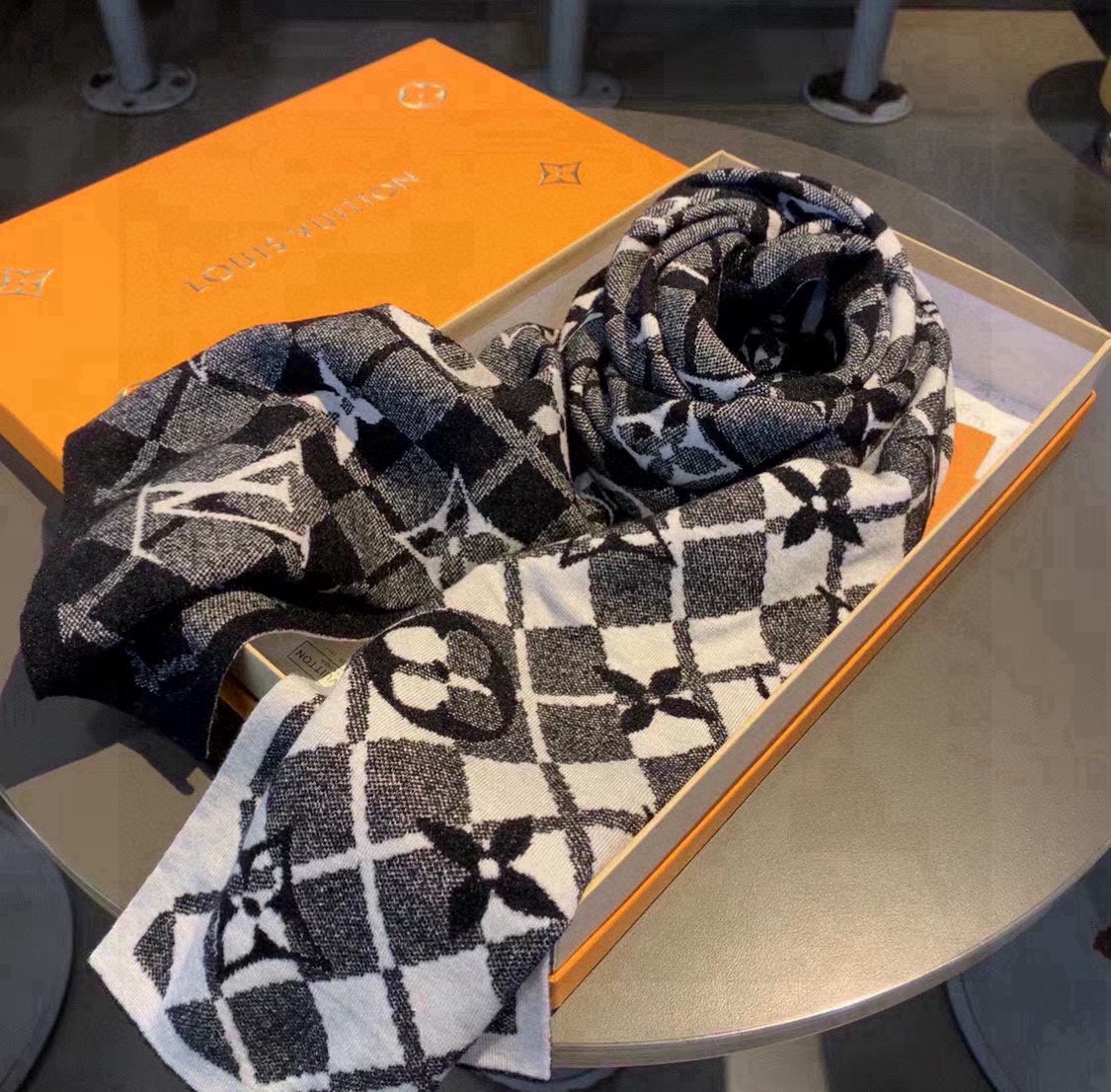 SCARF 180 CM IN BLACK MIX WHITE CASHMERE 398237
