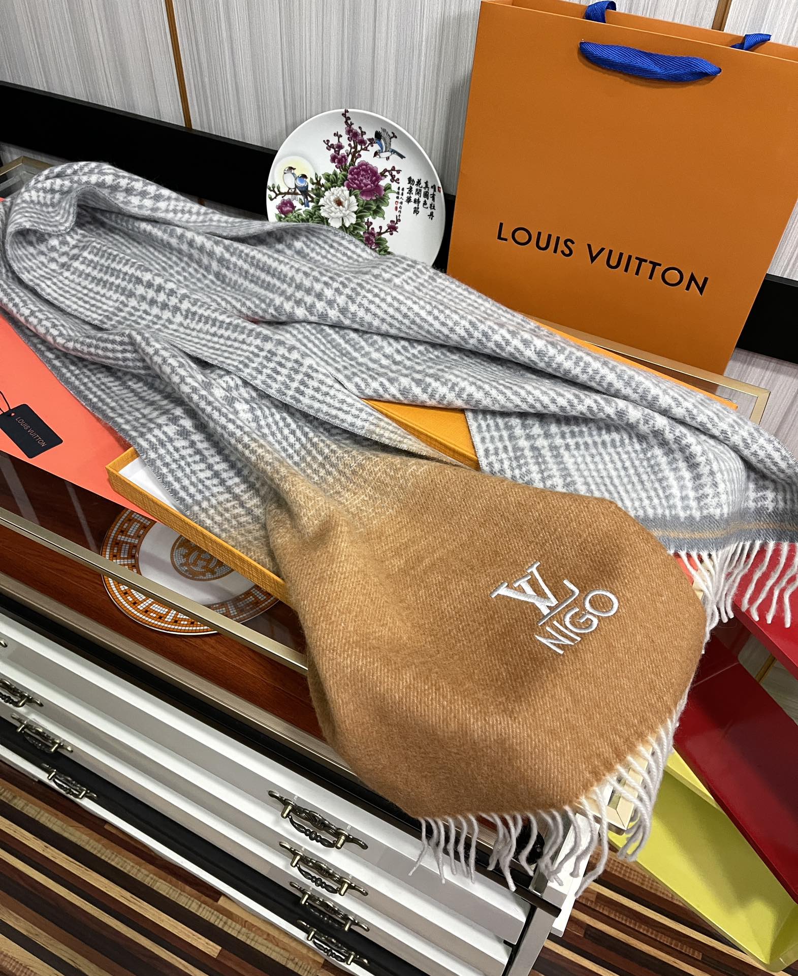 SCARF 200 CM IN BROWN MIX GREY CASHMERE 400011