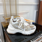 RUN 55 series leisure sports shoes are made of composite mesh fabric, rubber, adhesive film, and other technological materials. They are paired with solid color cowhide and suede cowhide, exuding a sporty style. The added cushioned lining and thickened rubber outsole provide comfortable wear. Monogram canvas heel straps and other logos convey brand interest, combining fashion and practicality. It won't rub your feet and increases height by 5cm, forcefully giving you long legs! With good looks, height, and technical features, this modern sports shoe enhances the proportion of the thighs when worn and has high technology content. 😍 Perfect details 💯