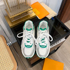 RUN 55 series leisure sports shoes are made of composite mesh fabric, rubber, adhesive film, and other technological materials. They are paired with solid color cowhide and suede cowhide, exuding a sporty style. The added cushioned lining and thickened rubber outsole provide comfortable wear. Monogram canvas heel straps and other logos convey brand interest, combining fashion and practicality. It won't rub your feet and increases height by 5cm, forcefully giving you long legs! With good looks, height, and technical features, this modern sports shoe enhances the proportion of the thighs when worn and has high technology content. 😍 Perfect details 💯