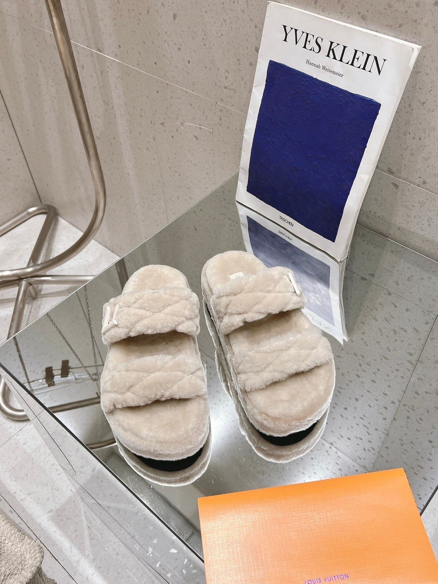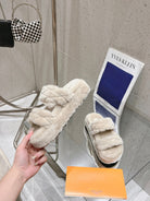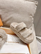 LV Sunset Platform Comfort Mule Milky Beige Wool