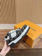LV Trainer Maxi Sneaker Black Mix White Monogram Denim Fabric