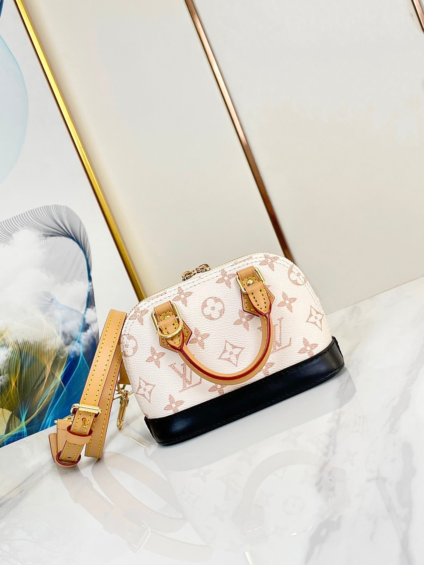 nano alma 18 beige monogram coated canvas brown black calfskin