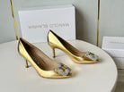 Manolo Diamond Buckle Pumps Gold Mirror Cowhide 451182
