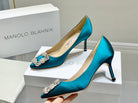 Manolo Diamond Buckle Pumps Olympic Silk 327506