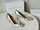 Manolo Diamond Buckle Pumps Silver Mirror Cowhide 451180