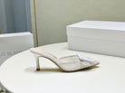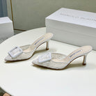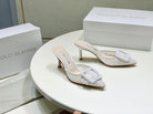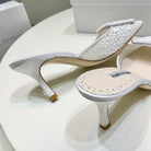 Manolo Mules 7cm White Hollow Lace Leather Bottom 451198