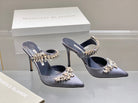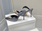 Manolo Mules Crystal Grey Silk Satin 219383