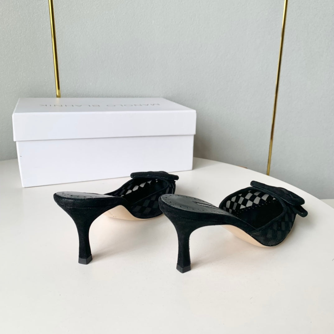 Manolo Mules Latest Checkerboard Black Fabric Leather 528010
