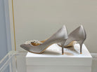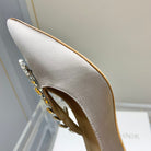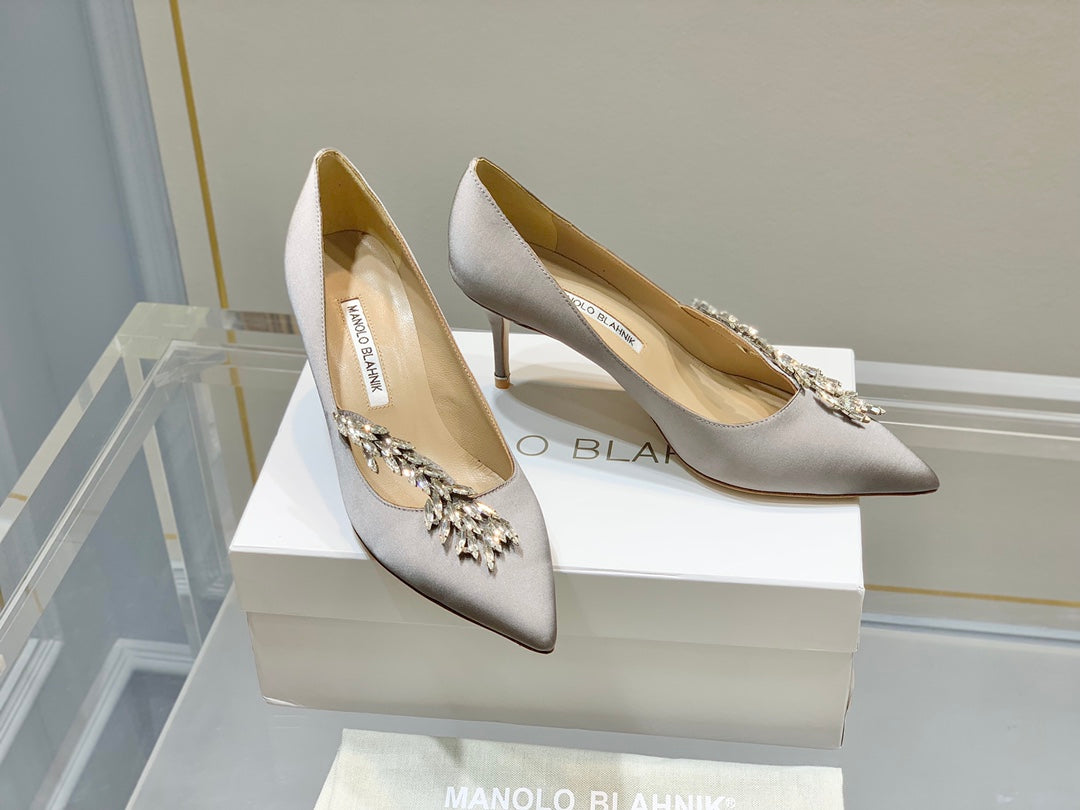 Manolo Wheat Ear Rhinestone High Heels Pumps Grey Silk Fabric 327447