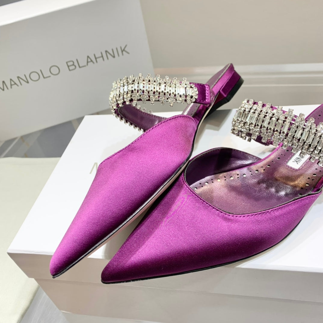 Manolo Flats Mules Crystal Purple Silk Satin 327473