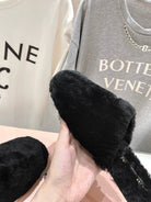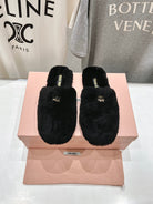 Miu Slippers Black Soft Imported Wool And Fur