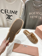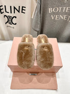Miu Slippers Light Brown Soft Imported Wool And Fur