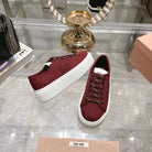 Miu Sneaker with Logo Maroon Red Demin Fabric 235311