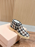 Miumiu 25 Plaid Slip-on Boot Black Brown Mix White Suede Wool 553702