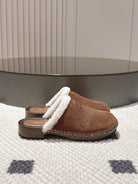 Miumiu 25 Shearling-trimmed Slipper Brown Suede Wool 547576