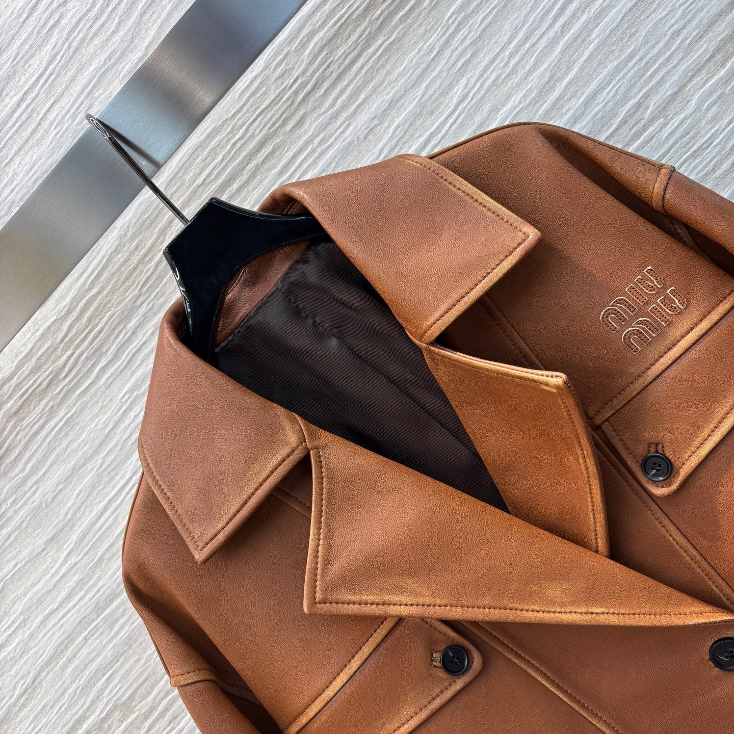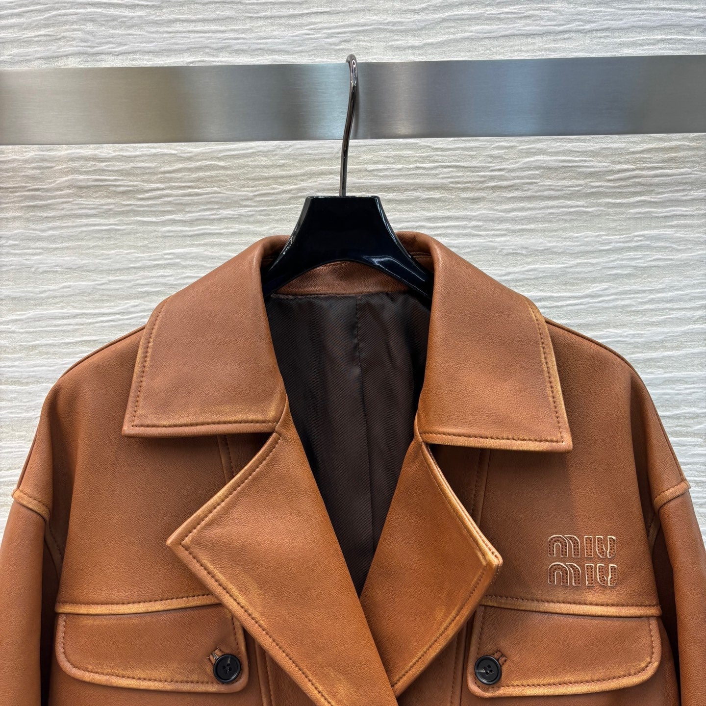 Miu Miu 25 Leather Jacket Brown Lambskin